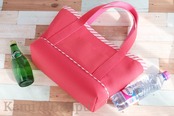 鮮やかなピンクはシンプルな服装にもよく映え、バッグの切り替え部分に一周した斜めストライプの玉(パイピング)が目を引きますので、きっとお出かけも楽しくなると思います♪