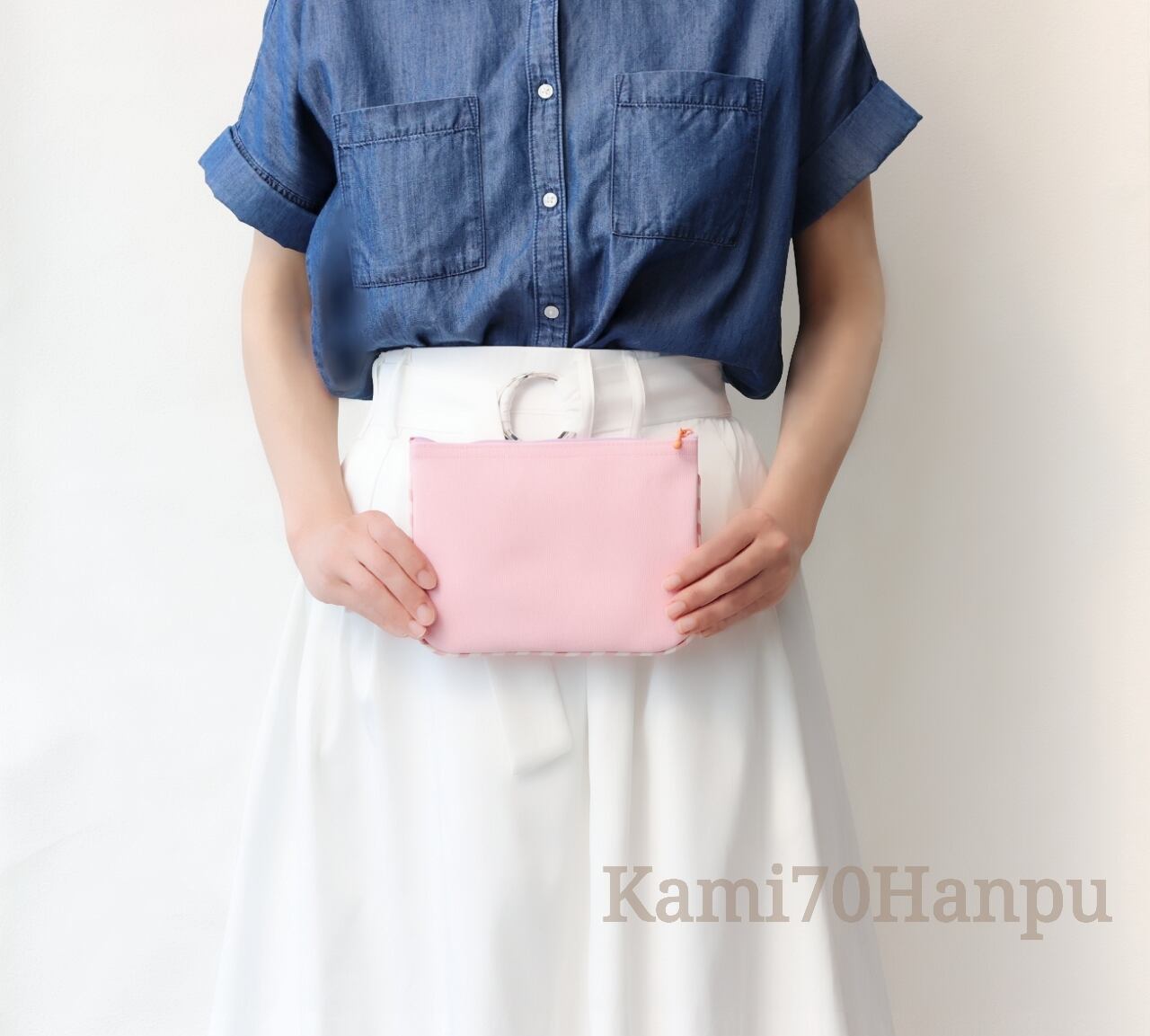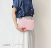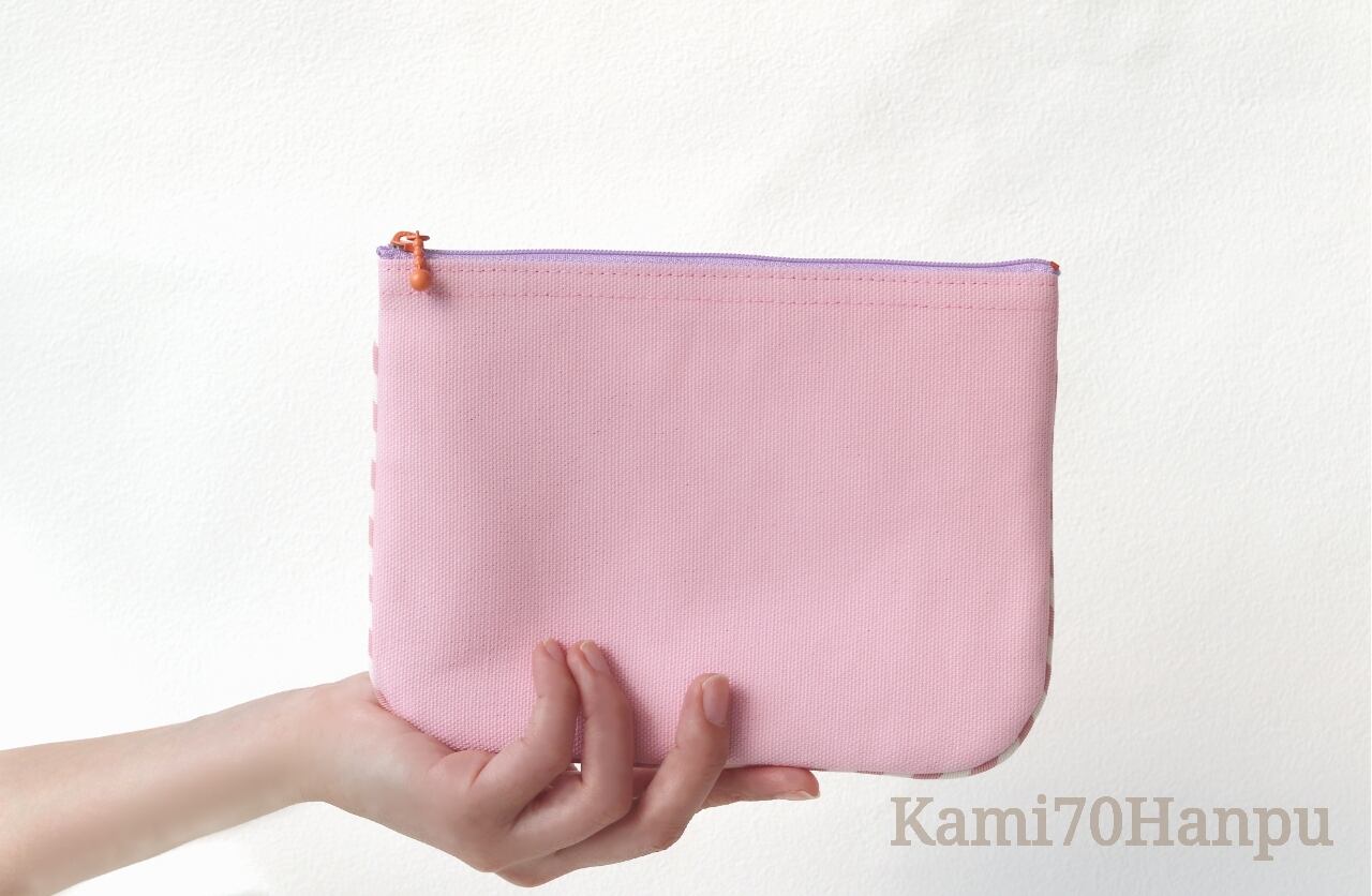国内産の8号帆布を使った、優しいサクラ色のペタンコポーチです。
